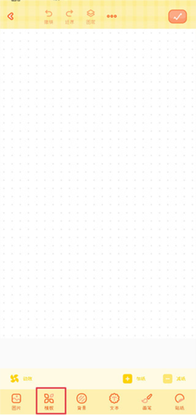 2、可以直接在空白页面上使用图片、背景、文字、贴纸等功能进行创作;也可以在下方模板区选择喜欢的模板开始制作。