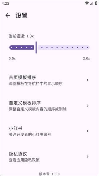 3、在设置中,可根据个人需要调整语音播放速度,并更改模板的显示顺序。