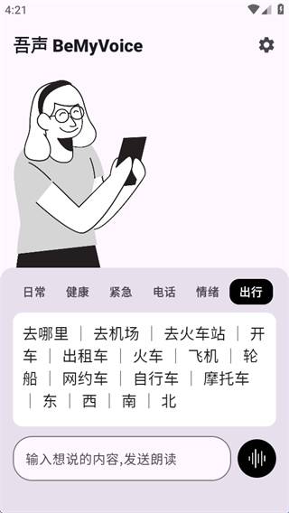 2、进入出行等分类,可见常用语言模板;用户也能直接输入想说的内容,实时生成语音。
