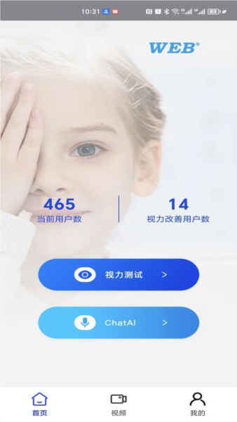 2、在首页允许必要权限,熟悉各功能模块,点击视力检测进入测试页面;