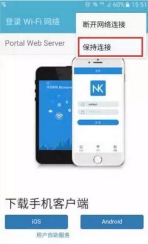 方法一:在手机【设置】的【wifi】中,进入已连接WiFi的详细页面,选择“保持连接”;或首次登录失败后,忽略该网络并重新连接,再次选择“保持连接”。
