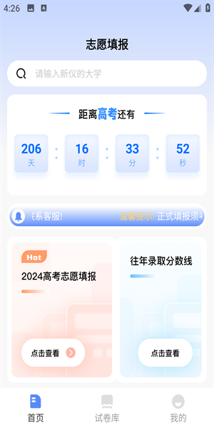 1、下载并打开软件后,首页会显示当前距离高考剩余的天数。