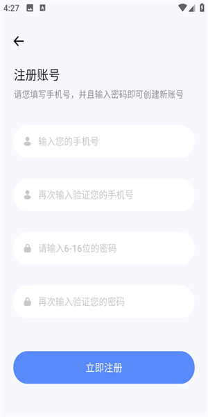 4、在注册页面输入手机号码、验证码及密码,最后点击立即注册完成操作。
