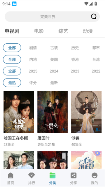 3、我们还可以通过分类功能来获取到电视剧、电影、综艺、动漫等多种类型的影视内容。