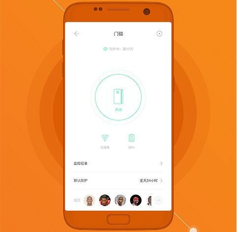完整展示门窗监控器的状态、设防时段、历史记录及成员信息,构建周全的安防体系。