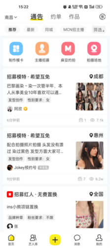 商家与经纪人可在平台发布活动通告与招募信息;