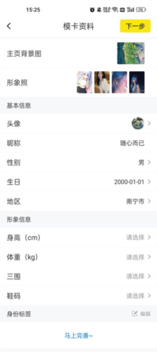 上传制作模卡所需的个人照片;