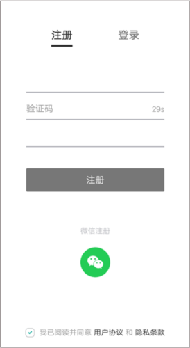 1、下载并打开应用后,用户可使用手机号或微信账号进行注册登录。