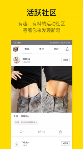 - 活跃的运动社区内,教练在线答疑,用户可与健身伙伴无障碍交流。