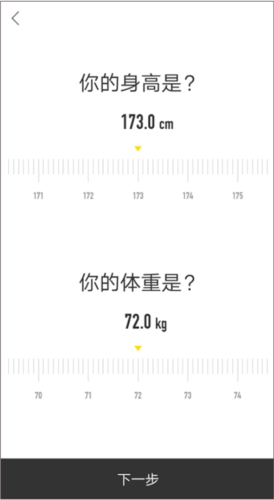 2、完成账号注册后,逐步填写个人基本信息:包括性别、身高与体重。