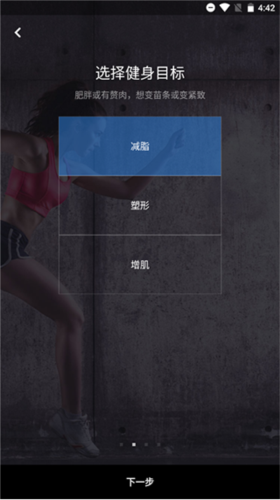 3、接着设定个人锻炼目标:例如减脂、增肌或塑形。