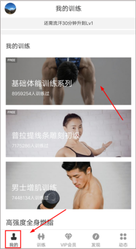 5、进入应用主界面后,点击【我的】即可查看训练计划并开始锻炼。