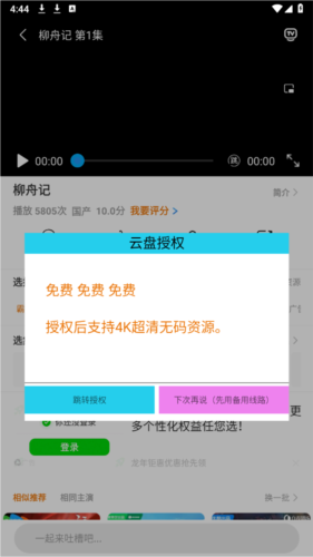 4、找到想看的剧集后,需完成网盘授权方可正常观看。