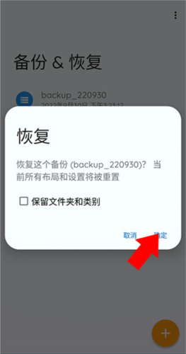 6、选择需要恢复的备份包,点击确定即可完成导入。