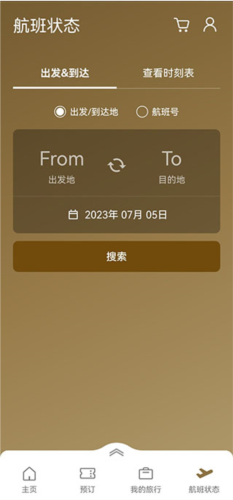 点击右下角航班状态进入查询页,可通过输入起降城市或航班号查询具体航班,也能查询大韩航空直飞航班的时刻表。