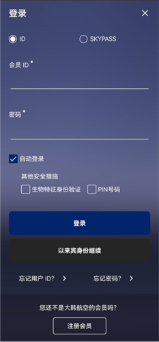 打开应用后进入登录页面,用户可在此登录账户或注册新会员。