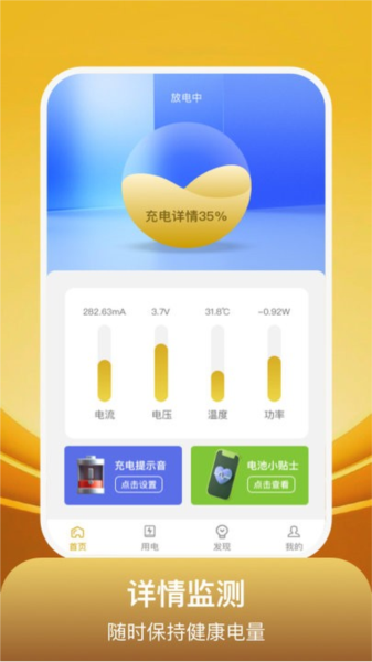 2、全方位电量监控:详细监测充电类型、实时功率、电压与电流等多项数据,帮助您全面掌握手机电池状态。