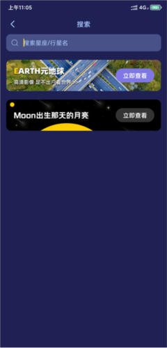输入恒星、梅西耶天体、星座或行星名称时,界面将显示匹配结果,点击即可定位查看;