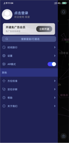 2、通过菜单开启AR模式,手机传感器将根据朝向实时匹配显示星空;