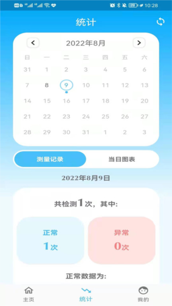 应用支持蓝牙连接设备,可同步显示并记录每次检测数值,自动生成可视化变化图表,方便用户直观理解黄疸水平趋势。