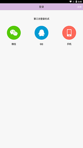 1、打开应用后需先完成登录,支持微信、QQ或手机号登录,也可在右上角注册新账户。