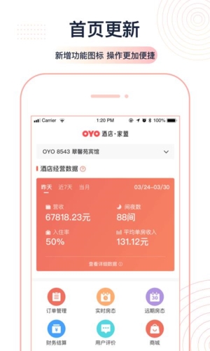 OYO家盟app是北京佳游乐玩科技有限公司专为酒店企业设计的管理工具,这款软件致力于提升酒店营销效率,协助商家优化日常运营;通过移动端即可随时掌握酒店经营动态,包括每日收支明细、订单来源追踪等关键数据,同时每日推送行业资讯,助力用户更高效地管理酒店业务。