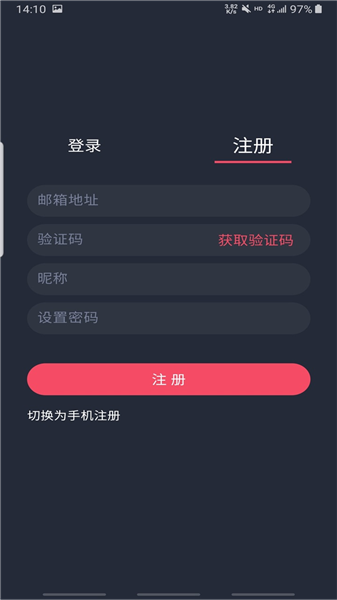 4、没有账号则点击注册,输入手机号及验证码即可完成注册。