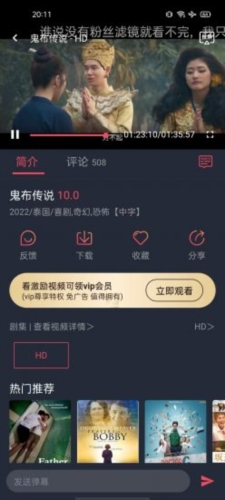 5、观看过程中可以使用弹幕、下载、收藏以及分享等多种互动功能。