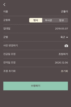 完成中文设置后,打开应用点击左上角菜单图标;选择顶部的“编辑及追加”功能,再点击右上方“+”号;观看一段视频广告即可进入编辑页面。随后可自定义头像、填写入伍日期与兵种,系统将自动计算退伍时间;完成必要设置后保存即可。