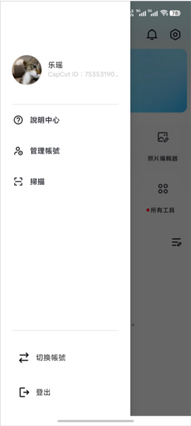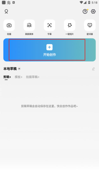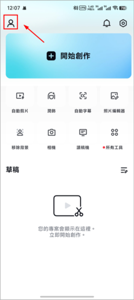 1、启动手机上的剪映国际版应用,进入主界面后点击左上角的头像图标。