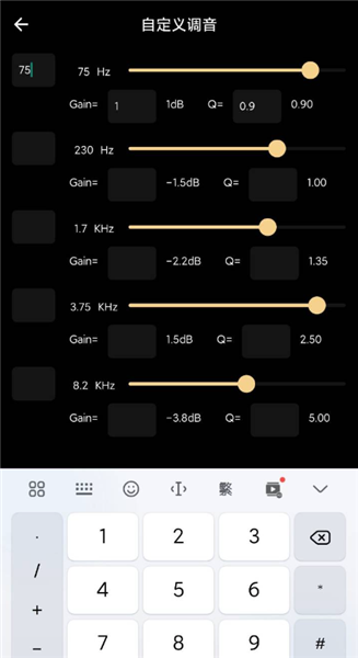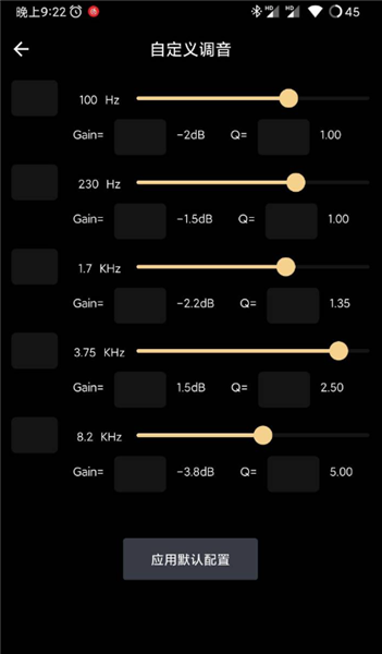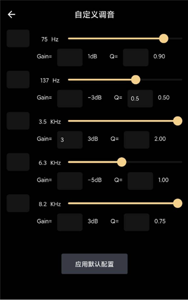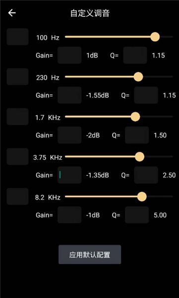 首先进入数字化均衡器界面,你会看到五个可供自由设定的频段。