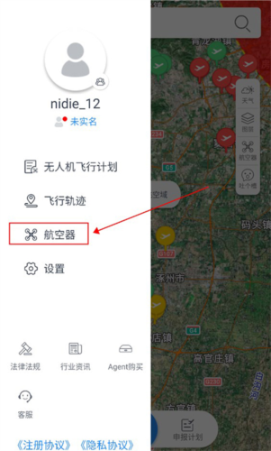 2. 选择航空器选项,进入无人机管理页面。