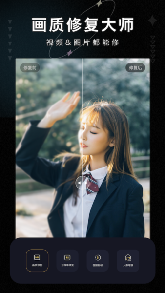 4. 基于AI模型的高级增强:通过人工智能数据模型执行深度修复与增强,让照片和视频效果更真实生动。