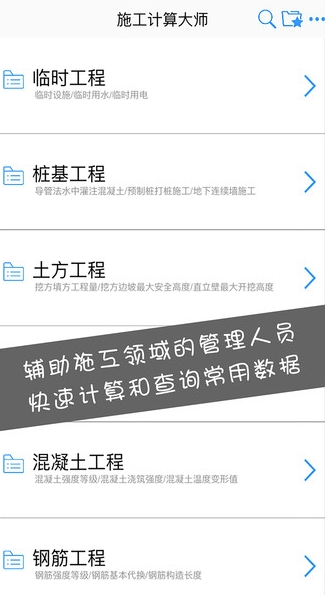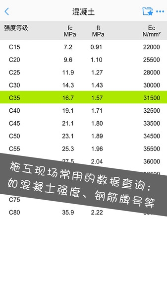 5、提供常用的施工参考数据,与规范标准同步;