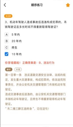 1、可在线学习各类驾考知识,系统自动纠正错题;