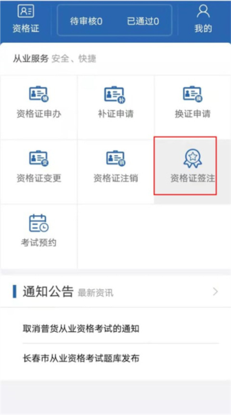6、成功添加资格证信息后,方可办理补证、换证及签注等相关业务。