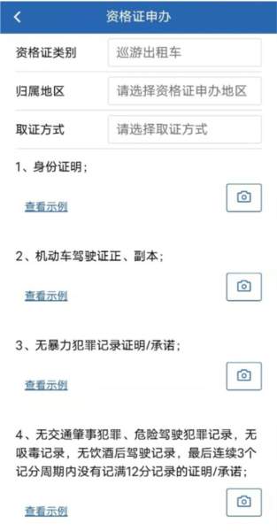 4、办理新证:在主页面点击“资格证申办”,依次选择证件类别、归属地区、取证方式,确认后上传相关材料照片;待审核通过,返回主页点击“考试预约”即可进行考试预约。