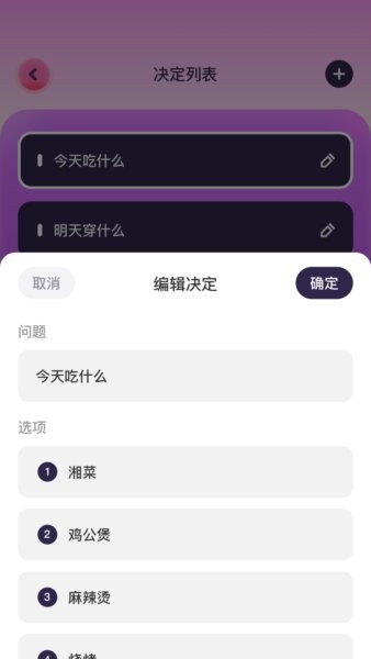 先从本站下载安装转盘决定器,打开后看到主界面,点右上角编辑键输入你的问题。