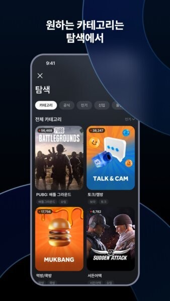SOOP国际版是一款为全世界用户量身打造的直播互动社区,你可以用它随时观看各种热门内容,比如刺激的游戏比赛、搞笑的娱乐节目或真实的日常生活分享。不仅如此,还能轻松用手机开启自己的直播,和全球朋友实时交流。软件的界面设计很贴心,采用了现代的深色风格,再配上圆形头像和直观的分类,让你一启动APP就能快速找到喜爱的频道和正在直播的房间,感觉像走进了一个属于你的互动空间。这款应用操作简单,功能强大,能让你尽情享受娱乐时光。如果你觉得这款软件实用有趣,不妨直接在本站下载使用。