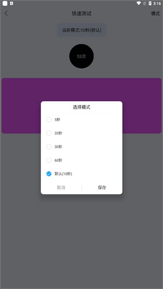 1、打开应用后,在首页选择“快速点击”或“滑动”模式进入测试;