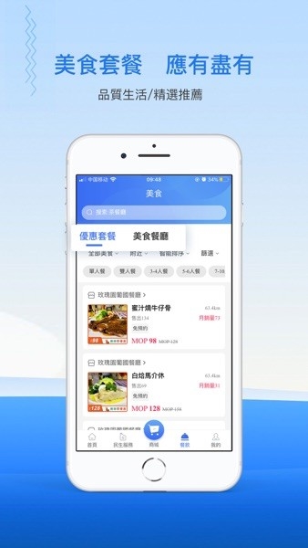 美食套餐应有尽有:提供餐饮美食推荐、扫码点餐、快捷支付、品质商家推荐及优惠精选等内容;