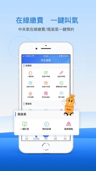 油气服务线上缴费:包含一键加油、中央气线上支付、瓶装气预约、无感加油及加油卡线上充值等;