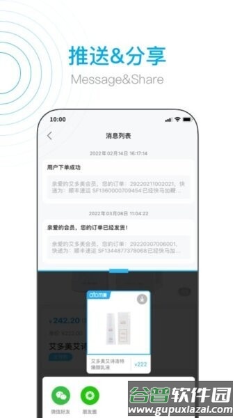 消息和分享功能更流畅,订单发货和物流更新集中显示,并及时通知;商品信息也能一键分享给联系人。