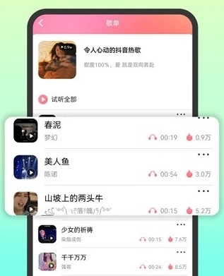 潮铃多多的界面设计简洁明了,操作起来十分顺畅。每天都会更新当下流行的歌曲铃声,让你始终保持新鲜感。软件集成了来电秀、充电提示音和壁纸等多种实用功能,全面照顾用户的个性化需要。直接通过手机就能快速更换铃声,操作步骤简单,成功率高,有效避免铃声重复的尴尬。