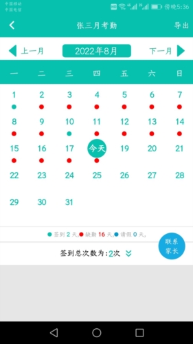 2. 今日签到:支持远程查看孩子在校的签到情况。