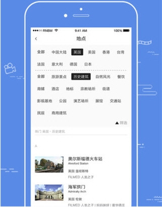 1、通过电影或地点类型的筛选,快速找到符合个人兴趣的内容;