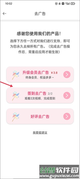 2、系统提供三种去除广告的方式,此处选择第二种“签到去广告”;
