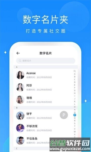软件会自动整理你收集的联系人,方便按姓名首字母查找。