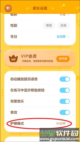 为保护儿童视力健康,应用内置护眼模式,允许家长管理使用时长,下面介绍具体设置方法。