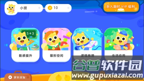 打开应用进入主界面,点击左下角的家长模式入口,通过验证后进入管理页面。